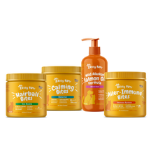 You'll receive Aller-Immune Bites™ for feline immune system support, Calming Bites™ to keep your kitty feeling relaxed, Hairball Bites™ to help minimize hairball formation, and Wild Alaskan Salmon Oil Formula to support your cat's skin health.