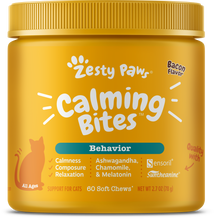It's only natural that pet parents can sometimes feel the anxiety of finding products that can keep feline pets at ease, relaxing, and mellow. Well, now you can stop feeling anxious and relax! Calming Bites are the relief you're looking for if you need a functional supplement that can help your cat with normal stress! This functional chewable cat supplement features Sensoril Ashwagandha and Suntheanine, an advanced form of L-Theanine to support relaxation and calmness for your feline pet. Plus, these soft chews also include Valerian Root, Melatonin, Chamomile, Vitamin B1 (Thiamine Mononitrate), and L Tryptophan for additional support to keep your kitty companion calm. Best of all, cats love the delicious bacon flavor that’ll give your cat an itch for more. Also, pet parents can treat themselves to a sigh of relief knowing that their cat can maintain composure during thunderstorms, separation, everyday anxiety, neighboring cats and dogs, fireworks, car rides and travel, and other moments of normal stress. They'll feel happy and zesty, which treats you to even more good (and calmer) moments and memories!
