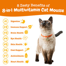 - Eight Benefits in One Tasty Squeeze! - Zesty Paws 8-in-1 Multivitamin Cat Mousse is a supplement that targets eight areas of your pet's health and well-being to keep them feeling their best.