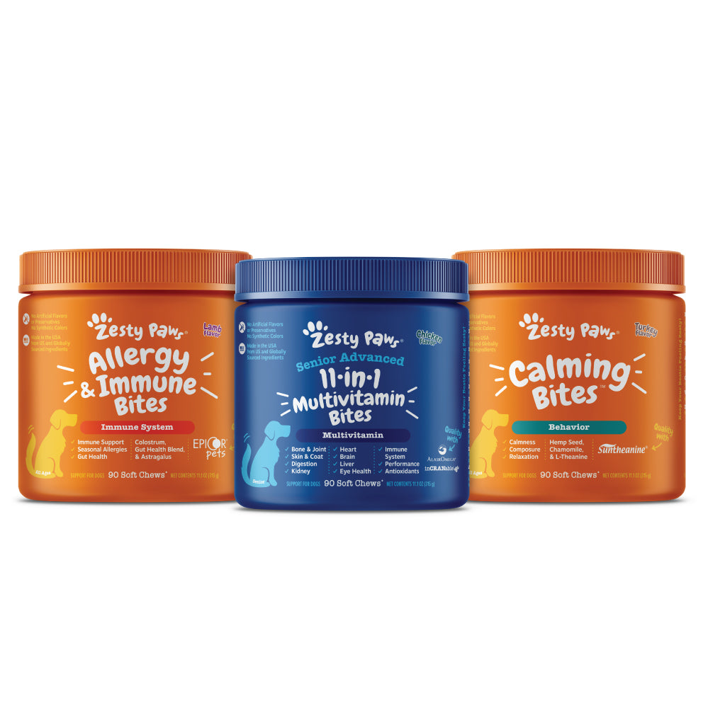 As a brand beloved by besties, trusted by pet parents, Zesty Paws® products are made to bring pets and pet parents closer together. Whether it’s for their mobility, calmness, tummy, or teeth, we are driven to deliver high-quality ingredients, functional benefits, and fun flavors that support your bestie’s Zesty way of life!