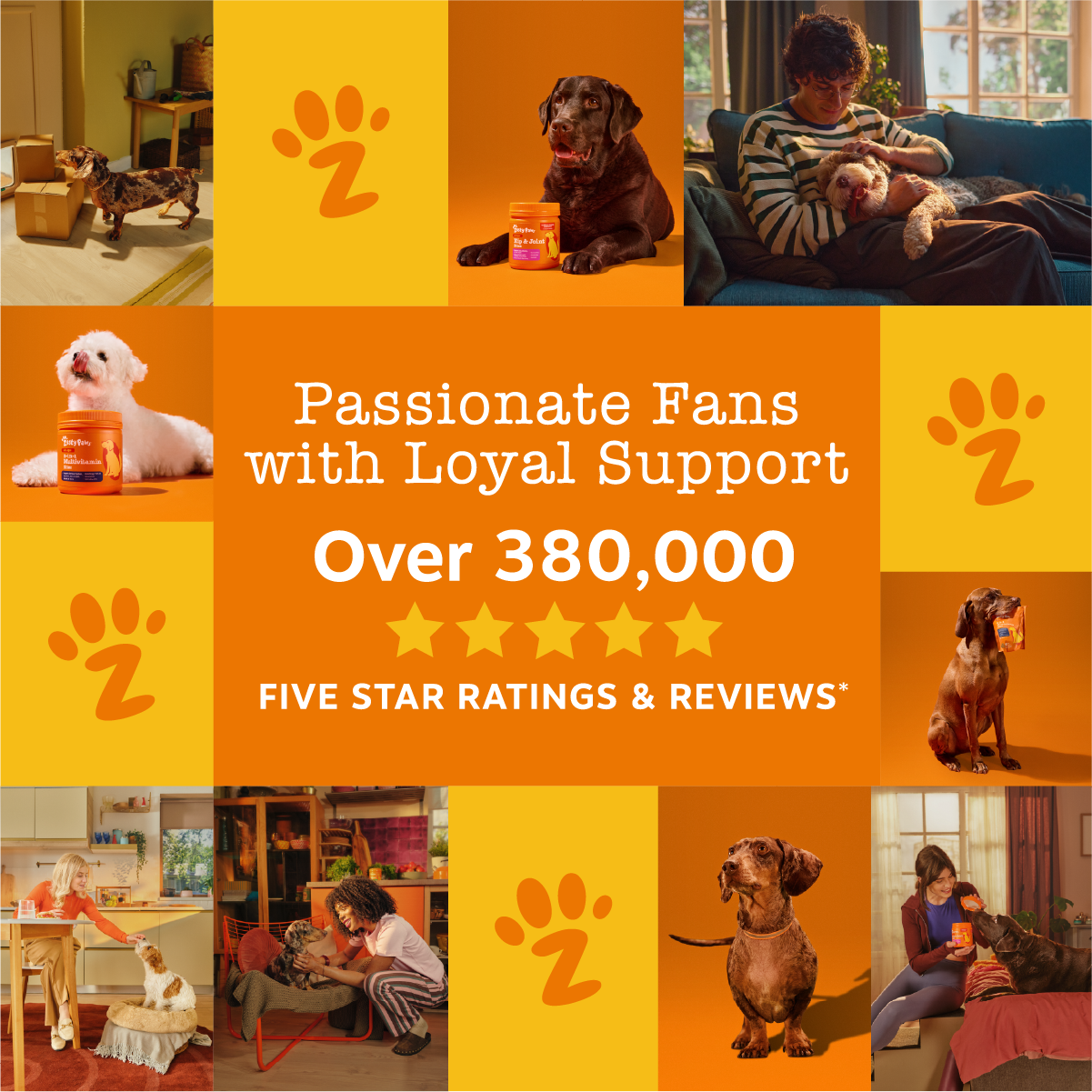 *Based on over 380,000 5-Star Ratings and Reviews on all Zesty Paws® supplements on all eCommerce channels in the US and ZestyPaws.com as of August 2025.