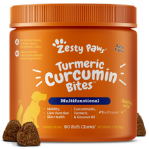 Zesty Paws Turmeric Curcumin Bites are soft chews made with pawsome ingredients that help with joint health, gut function, and immune support to help your dog feel their best.